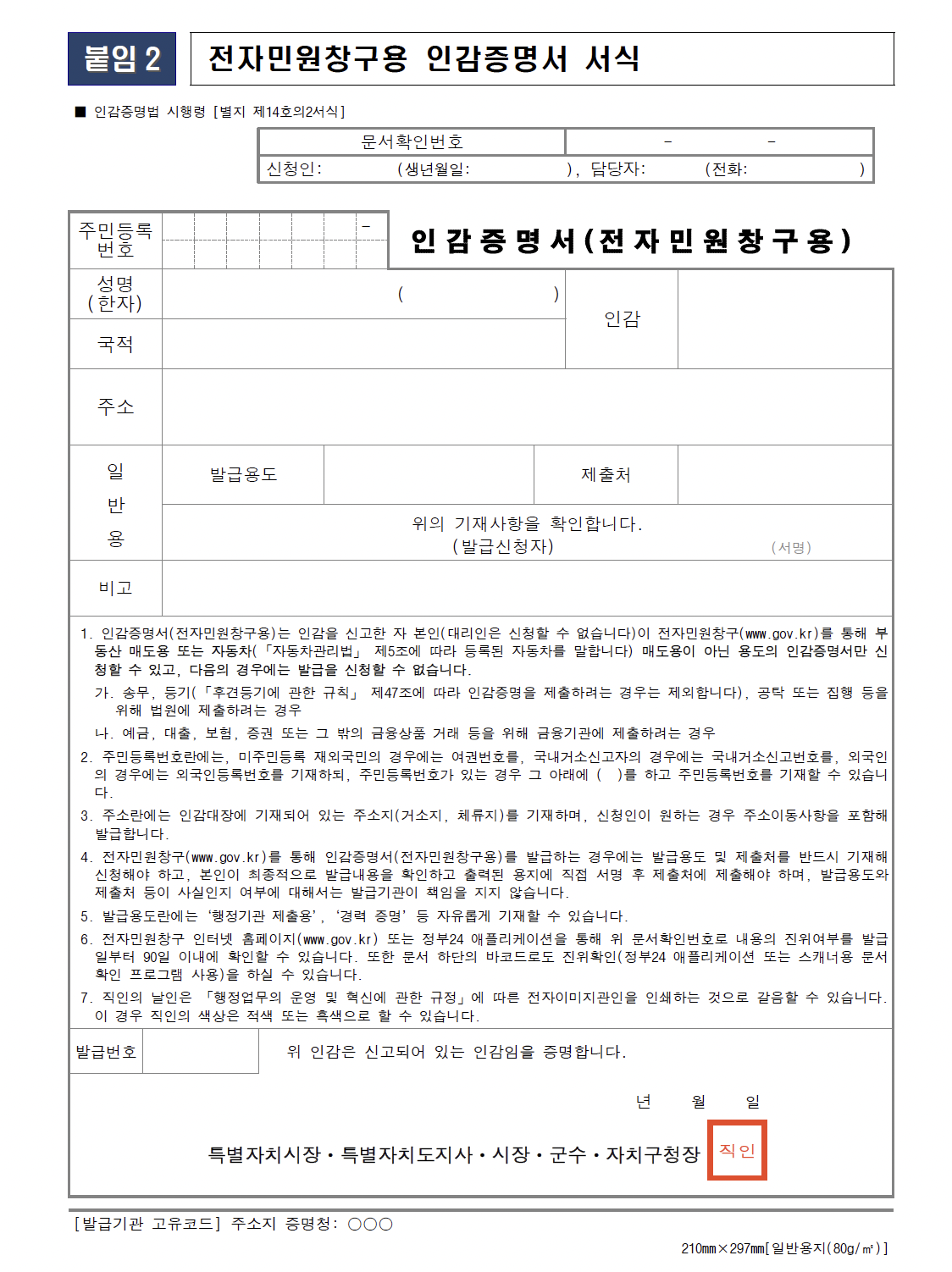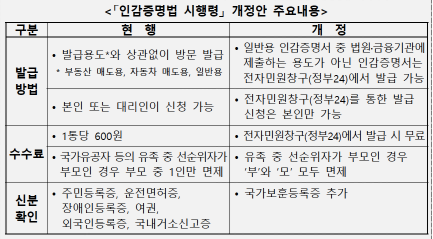 인감증명서 시행령 개정안 주요내용